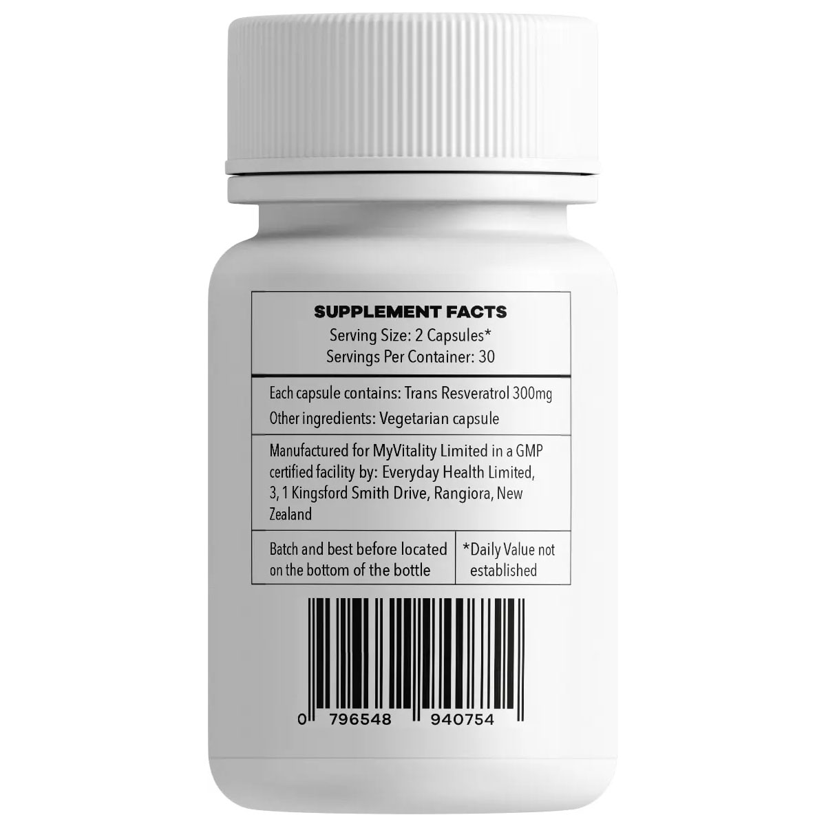 300mg of Trans Resveratrol per capsule.